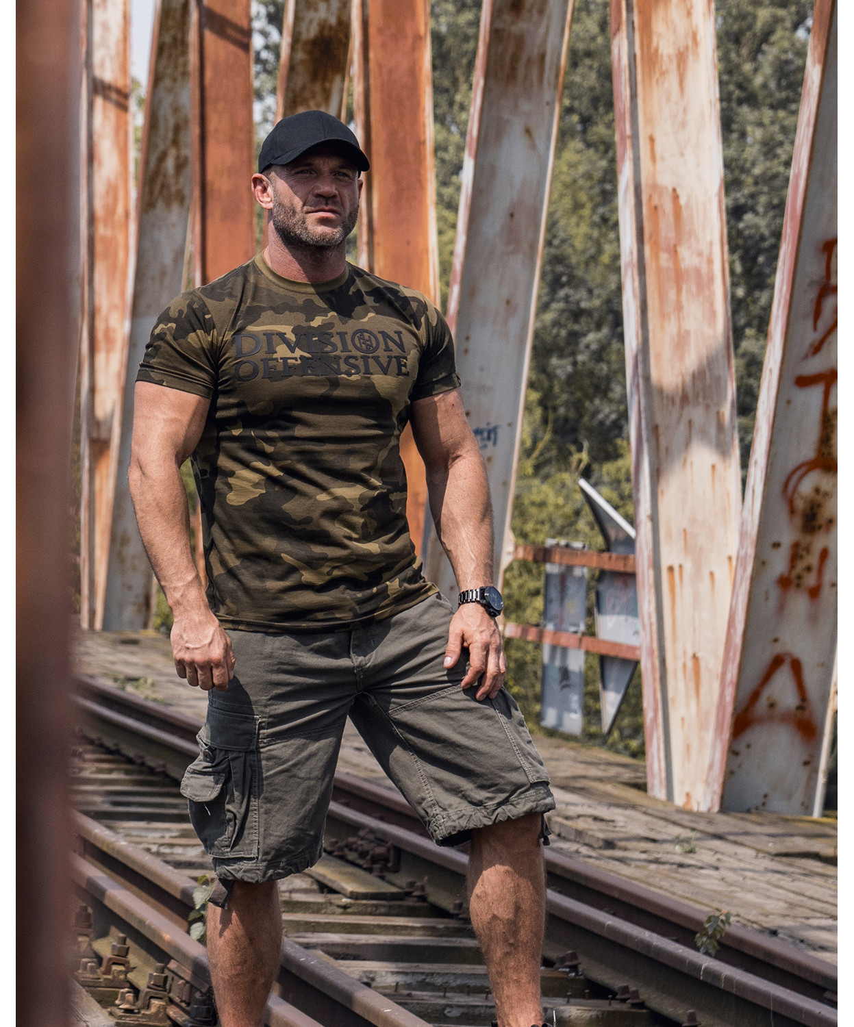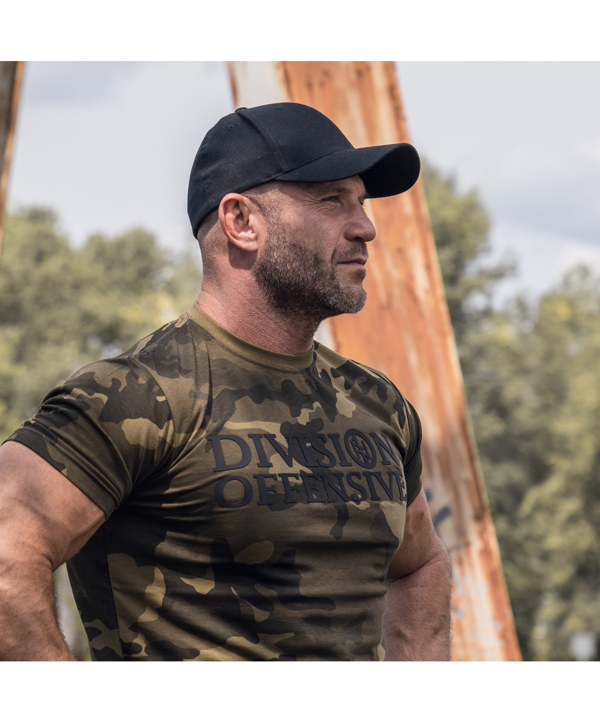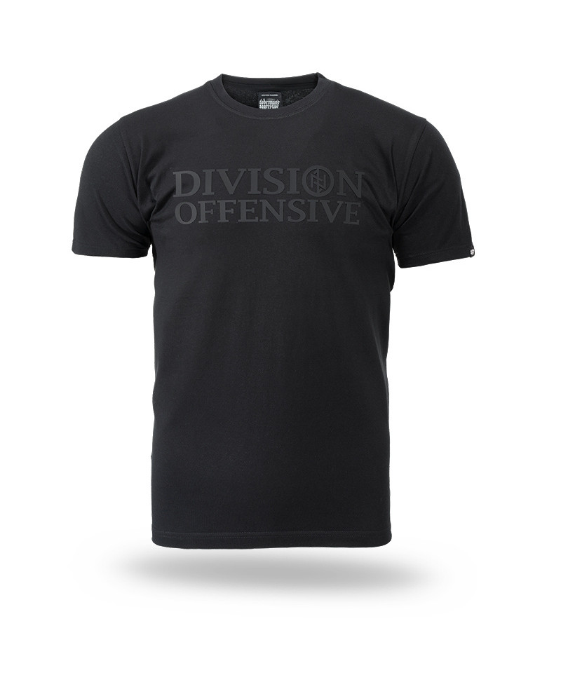 Футболка из хлопка плотностью 200 г. На левом рукаве небольшая этикетка с логотипом Doberman's Aggressive. На передней части футболки надпись DIVISION OFFENSIVE, выполненная методом 3D с характерной резиновой текстурой.