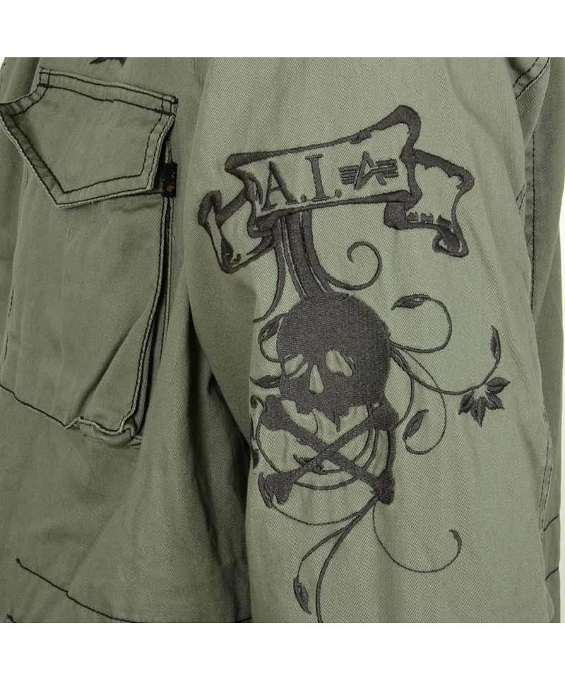 Мужская демисезонная куртка Skull от Alpha Industries пошита с применением элементов дизайна курток милитари. Два боковых наружных кармана и один внутренний закрываются на кнопки. В воротнике-стойке скрытый капюшон. На плечах куртки, декоративные хлястики. На спине броский, вышитый контрастными нитками, художественный мотив, который имеет продолжении и на левом предплечье куртки. Двойные швы и отличное качество материала, служат гарантией долговечности этой стильной, своеобразной модели. Материал: 100% хлопок.