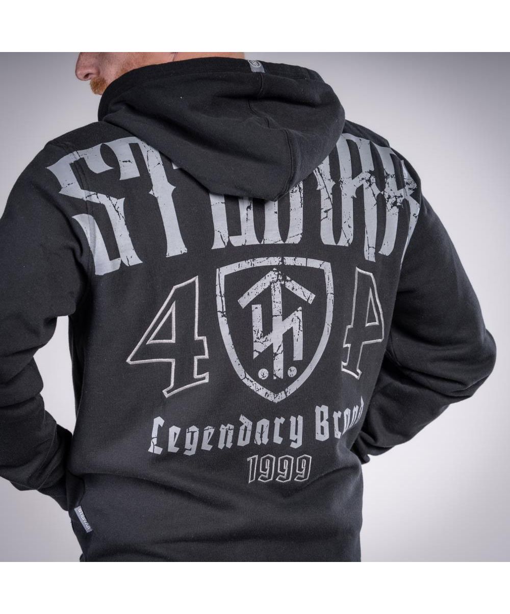Худи на молнии “Legendary schwarz” классического кроя с объёмным контрастным принтом на спине.