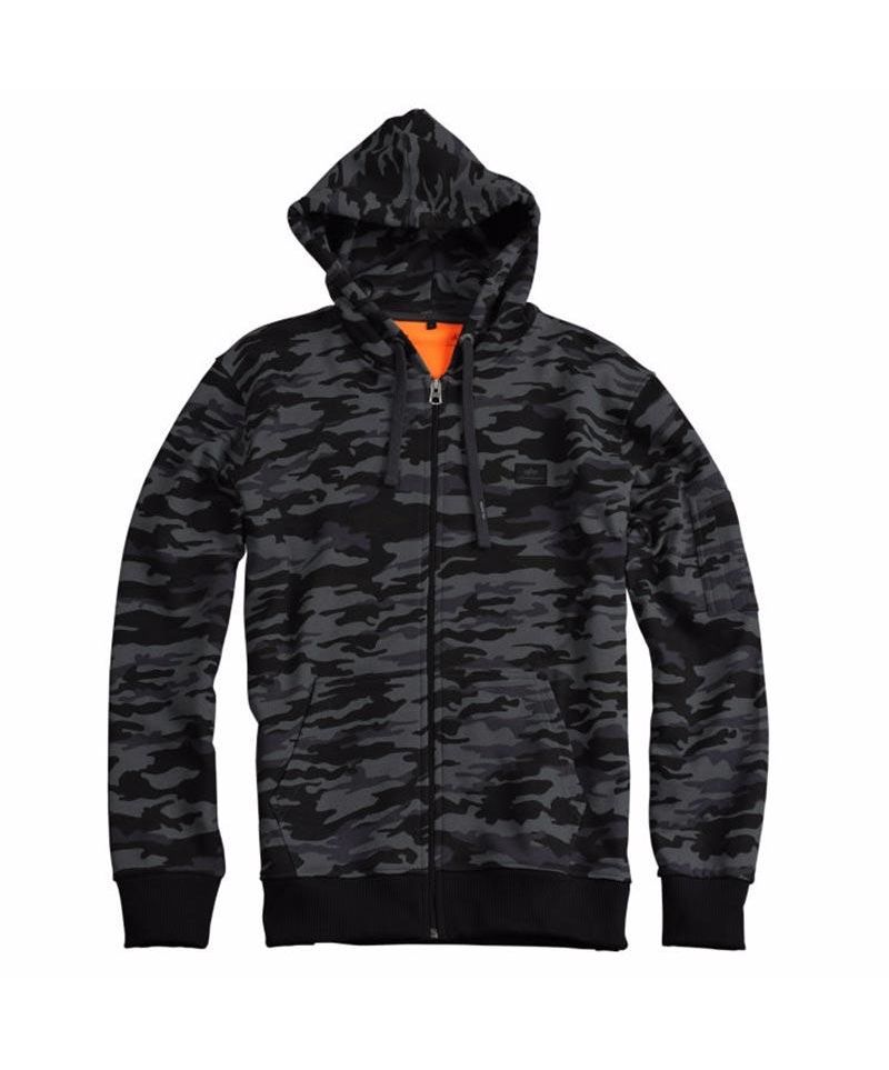 Мужская куртка X-Fit Zip Hoody Alpha Industries предназначена для холодной погоды. Теплый капюшон на шнуровке для более плотного прилегания к телу во время понижения температуры, широкие двойные манжеты на рукавах и внизу куртки все это делает данную модель еще теплее. Куртка изготовлена из натурального трикотажного полотна с расцветкой темного камуфляжа и яркой изнаночной стороной. Боковые прорезные карманы, крепкая застежка-молния, отделка горловины все сделано качественно и прочно.
